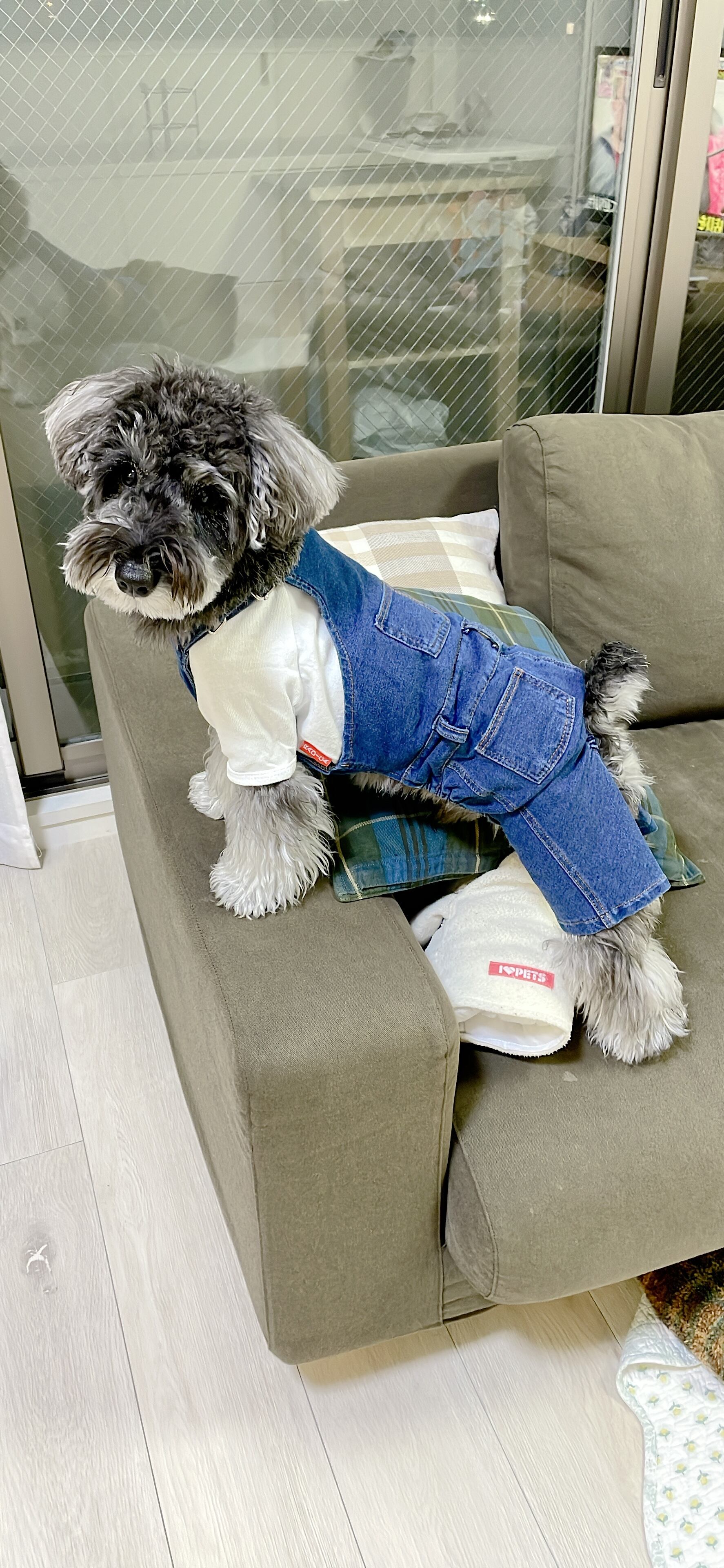 可愛いオーバーオール♡ 3週間程度で発送いたします! ラズ5.8kg Lサイズ着用!