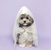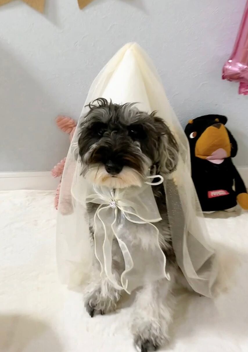 帽子にベールがついています。 首にはリボンです。 2週間から3週間程度お時間頂いています