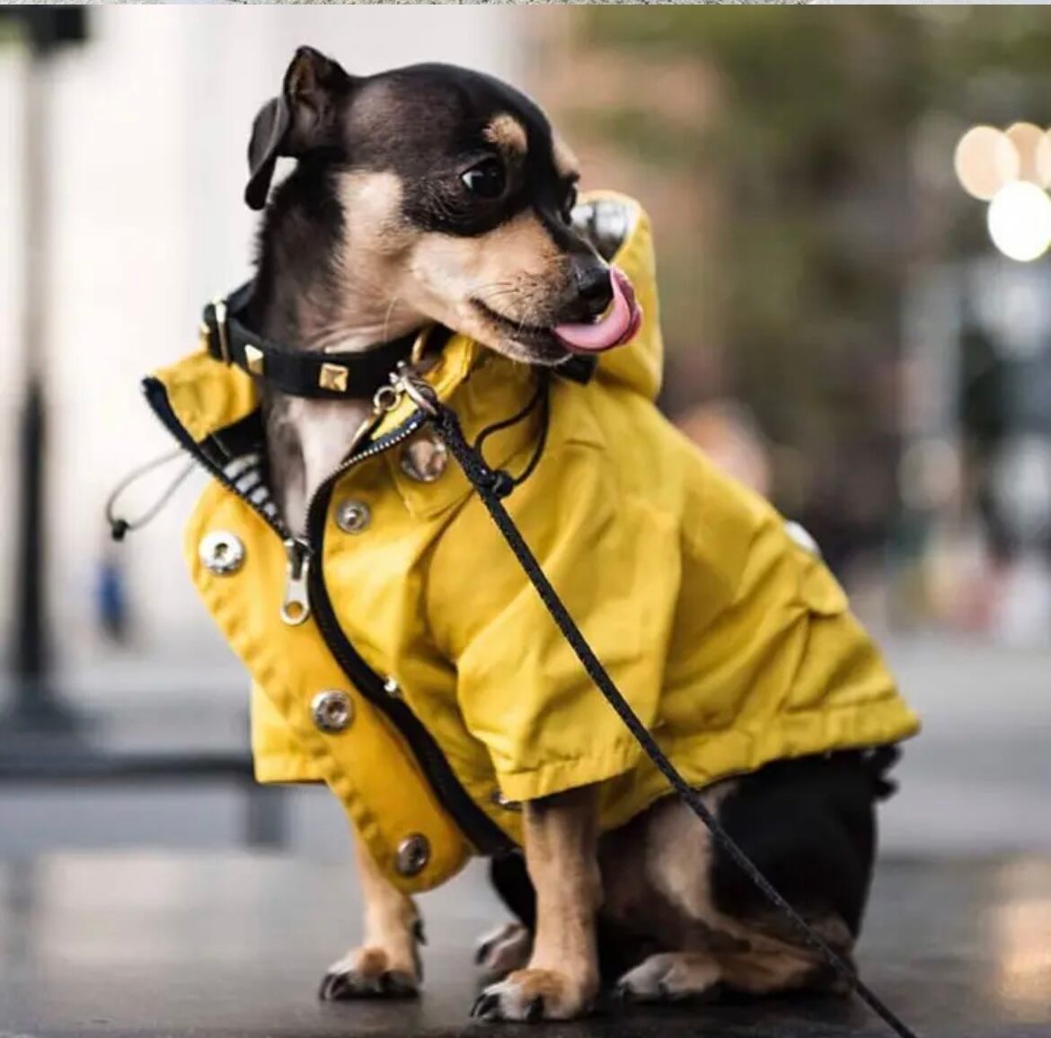 2週間程度お時間いただいています。 裏地がボーダーでかわいらしいです。 目立つ黄色もいいですよ! シュナウザー6kg Mサイズ着用